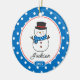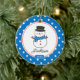 Dated & personalised 2 Sided Photo snowman Christmas Ornament set on white background and framed with a blue and white polka dots. . A Wonder Christmas gift sure to be treasured for many years to come.
