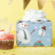 Cute Snowman Christmas Blue Pattern Holiday Wrapping Paper