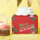 This sweet custom Christmas wrapping paper features a photograph of a red and green stocking with an adorable snowman dressed with a seasonal plaid scarf and hat set over a red background. You can remove the white outlined green Merry Christmas text added to the background then click Customise to add text in a font style, colour and size you prefer. Fill in the template field with your name, remove the text or in customise select a font style, colour and size you prefer.