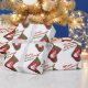 This sweet custom Christmas wrapping paper features a photograph of a red and green stocking with an adorable snowman dressed with a seasonal plaid scarf and hat set over a white background. Fill in the template field with your name, remove that text or clickCustomize to select a font style, size and colour you like. You can clear the red Merry Christmas text added to the background then click Customise to add text you prefer