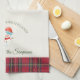 stylish red black tartan,rustic christmas custom monogram,personalised customised kitchen towel,personal name check pattern,scottish checked chequered dishcloth,add your own festive text,merry xmas family surname,winter wonderland plaid,classic traditional snowy snow man,christmassy xmasy cute snowman