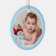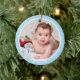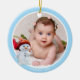 Cute Snowman & Custom Photo on Light Blue Ceramic Ornament
