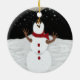 Cute Snowman Enjoying The Moon Painting Ceramic Tree Decoration
