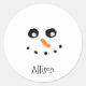 Cute Snowman Face Personalised Name Round Stickers are great stocking stuffer idea or Christmas party favours!  Smiling snowman face with your name below him.  CUSTOMIZE WITH YOUR NAME OR TEXT BY SIMPLY FOLLOWING THE ZAZZLE TEMPLATE PROMPT.