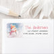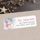 Winter holiday return address labels featuring an illustration of a cute snowman wearing a hat and your name and address in a whimsical font.