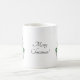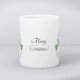 This cute snowman wearing a green and white stripe scarf and knit beanie makes this simple mug the perfect accessory to your holiday party or family breakfast. Merry Christmas sentiment can be changed. AI assisted graphic purchased with commercial use.