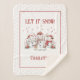 A Child's Cute Snowman Let It Snow Blanket With Their Name. Put a smile on someone's face with this cute Snowman Blanket designed with a group of three snowmen dressed in bright festive colours of red and green, surrounded with falling snow and their first name. The text includes: Merry Christmas and a Name. To personalise, simply insert your text into our easy template, replacing the sample. Makes a great gift for children.