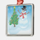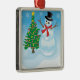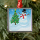 Cute snowman with snowflakes and decorated Christmas tree is so festive for the holidays.