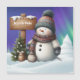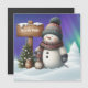 Cute snowman on North Pole with northern lights