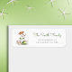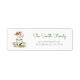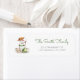 Adorable winter return address label with a snowman raking leaves. Illustrated and designed by Patricia Alvarez.