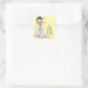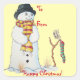 The cute snowman on this customisable christmas sticker is looking very smart in his stripy scarf and his black hat. The happy snowman has a  smile on his face as he looks down to his stripy Christmas stocking that he’s carefully hung on a tree branch that’s sticking out from the thick carpet of snow, he’s smiling because he’s looking forward to santa filling his stocking. This great Christmas sticker will look very great on christmas gifts. The text can be customised and you can personalise this Christmas sticker with your own text. The original snowman illustration is painted in water-colour.