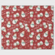 Two cute snowman are featured on this whimsical Christmas wrapping paper. One adorable snowman has on his Santa hat while the other is snug in his woodsman hat. White snowflakes and snow complete the holiday pattern.