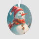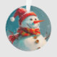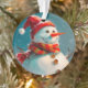 Not much is cuter for a vintage Christmas ornament than our whimsical merry snowman. He's got Santa's hat on, a great retro scarf, and of course a carrot nose. Happy he is, with his buttons and his stick arms. On the reverse of this round ornament is the traditional greeting, "Merry Christmas", a paragraph with example prose, and space for the family name and year. All the nice red text can be edited. Be sure to edit the name and year.