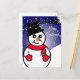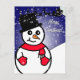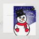 A snowman out in the night as Santa passes over to deliver toys to the kids of the world.