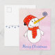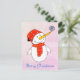 Cute Snowman with a Snowflake Pink Merry Christmas Holiday Postcard