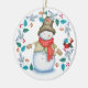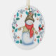 Cute Snowman with Bird Wreath Christmas Ceramic Ornament