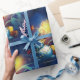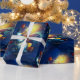 Wrap your holiday gifts with this Christmas wrapping paper featuring cute snowman with gifts and firework on blue background. Your presents will look extra jolly under the tree.