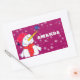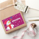 Cute Snowman with Snowflakes Kids Christmas Rectangular Sticker. Snowman Christmas holiday gift sticker for children. Christmas present sticker - personalise the sticker with child`s name. The sticker has a cute snowman with a snowflake on his nose. The background is purple with beautiful white snowflakes in different sizes and shapes. Make your Christmas gifts for kids special with this funny and cute holiday present sticker. Kids will love it.