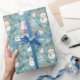 Cute Snowmen Snowflakes Green Christmas Wrapping Paper