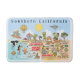 Bright and colourful scene offers a spectacular view of Southern California - wacky characters frolic on the beach and desert of SoCal showcasing Los Angeles, San Diego, Orange County, Santa Barbara, Riverside, Palm Springs, Anza Borrego and Joshua Tree parks as well as the border cities of Tijuana, Tecate and Mexicali. This charming scene has it all – a surfer hangs ten while a killer whale leaps out of the water, zoo animals greet the tourists, a muscular dude flexes his pecs as a T-Rex roars a challenge and a tank moves into position and much more…