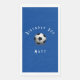 Birthday Boy soccer ball design in blue and white. Personalise with recipient name.