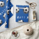 Birthday Boy soccer ball design in blue and white. Personalise with recipient name.