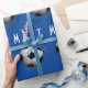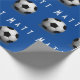 Cute Soccer Birthday Boy Blue and White Wrapping Paper