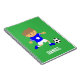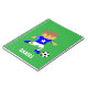 This cute notepad is great for boys who are soccer fans or football players! It comes with a cute boy in a trendy blue soccer jersey with star, white stripes on the sleeves, white shorts and matching blue football boots complete with studs getting ready to kick a soccer ball for goal! Personalise with child's name.
