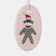 Cute Sock Monkey Wearing Santa Hat Christmas Ceramic Ornament