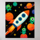 Bright retro rocket blazes through a starry black sky with smiling green aliens and colourful planets for playful outer‑space vibes perfect for kids’ rooms and classrooms, using clear keywords on theme, colour, and style to aid discovery. Unique phrasing and focused metadata align with Zazzle guidelines to avoid product types and keyword stuffing while maximising relevance.