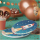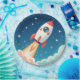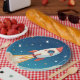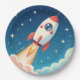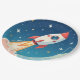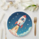 Cute space rocket blasting off paper plate