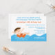 This 5x7 boys birthday party invitation has a cute pool theme. There is a boy jumping into the pool water making a big splash. You can easily customise your party information at the top and on the right. Artwork created by Babystar Design