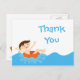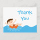 This boys thank you post card has a cute pool theme. There is a boy jumping into the pool water making a big splash. You can easily customise your thank you message on the backside. Artwork created by Babystar Design Cute splash girl's pool party birthday invitation