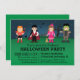 If your son's birthday falls in the Halloween month or you just want to have a Halloween dressed up party for kids, this cute and colourful spooky monsters Halloween party invitation is perfect for them! The illustration has boys and girls dressed in various adorable monsters and fantasy outfits which include little devil outfit with pointed tail, horns and pitchfork. The vampire smart looking outfit complete with cape and vest. The little pink witch dress and vest with broomstick and pointed hat. And the mask of green monster by Frankenstein and big comfy suit. Detailed background of cat, bats, tree and tombstones with stars in the sky. An invite that is going to impress the guests!