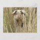This cute postcard features a beautiful photograph of a cute pink spotty pig emerging from some tall grass.