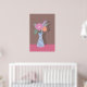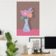 A cute bouquet of modern spring florals in a vase, featuring a colour palette of pink, brown, orange, green, purple and blue.