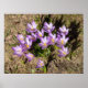 Cute spring crocuses. The photo was taken in May 2023. The poster is suitable for interior design.