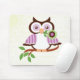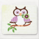 Cute spring owl design, featuring a cute spring owl in purple and dark brown holding a flower in her beak (bill) on a branch with green leaves. An adorable, feminine, decorative design for owl lovers. Some elements by Trina Clark.