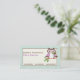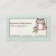 Cute spring owl on a branch with mint green plaid border business cards, featuring a cute spring owl in purple and dark brown holding a flower in her beak (bill) on a branch with green leaves on mint green plaid border. An adorable, feminine, decorative design for owl lovers. Artwork by Trina Clark.