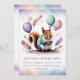 Celebrate in woodland style with this adorable squirrel birthday invitation! Featuring a watercolor squirrel with pastel balloons and boho feathers, this charming design brings warmth and whimsy to any celebration. Ideal for kids, baby showers, or rustic outdoor parties. Personalize easily on Zazzle with your event details