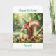 Personalised Aunt's birthday card. Adorable squirrel in birthday hat holding a gift personalised birthday card.