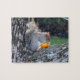 This cute puzzle features a grey squirrel in a tree eating a mini pumpkin. The bark of the tree and the out-of-focus background make this puzzle a bit of a challenge.