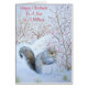 This festive snow scene shows a cute little gray squirrel sitting amongst the snow covered woodland shrubs, he's found a bush covered in red winter berries and is enjoying nibbling his lucky find. I think the winter wildlife picture of this hungry little gray squirrel makes a lovely festive greeting card and it will certainly be very well received by friends and family at this festive time of year. The Christmas greeting card has a simple but meaningful original non rhyme verse inside that's for nan but it can be customized to be a suitable send to the special people on your Christmas card list. The picture on this Christmas card is produced from my original watercolor painting titled "A Winter Feast.”