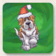 Cute St. Bernard in Santa Hat on Green Coaster