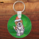 Cute St. Bernard in Santa Hat on Green Key Ring