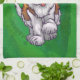 Cute St. Bernard in Santa Hat on Green Tea Towel