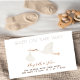 A cute stork illustration pregnancy announcement saying a baby is on the way.