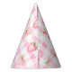 Cute Strawberry Berry Pink Gingham Brithday Party Hat