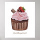 Cute Strawberry Cupcake In Watercolor Poster