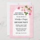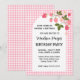 Cute Strawberry Pink Gingham Girls Birthday Invitation